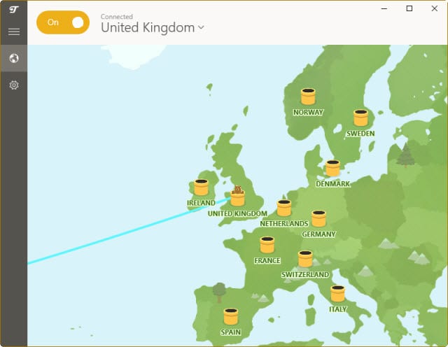Freedome 用户可以连接到美国、英国、芬兰、德国和瑞典的服务器。